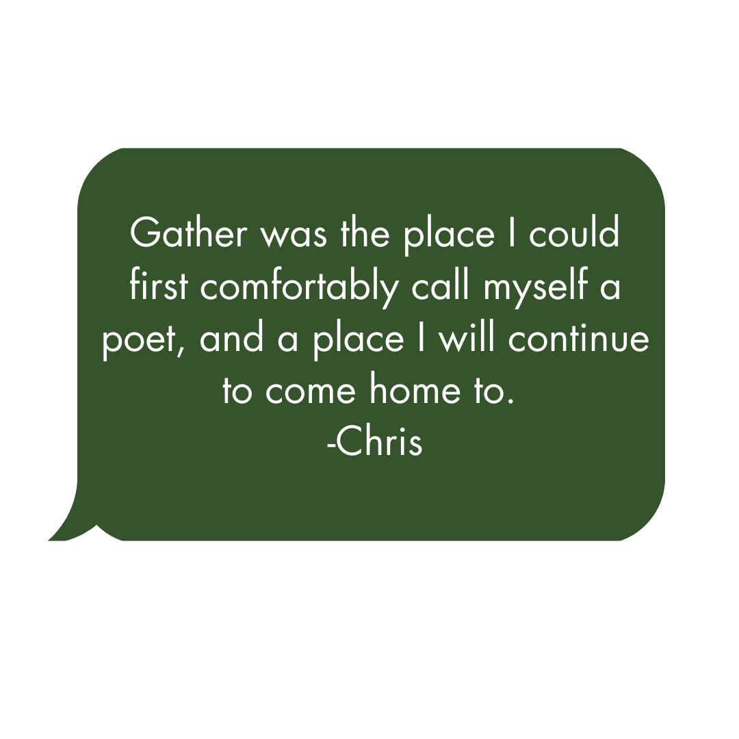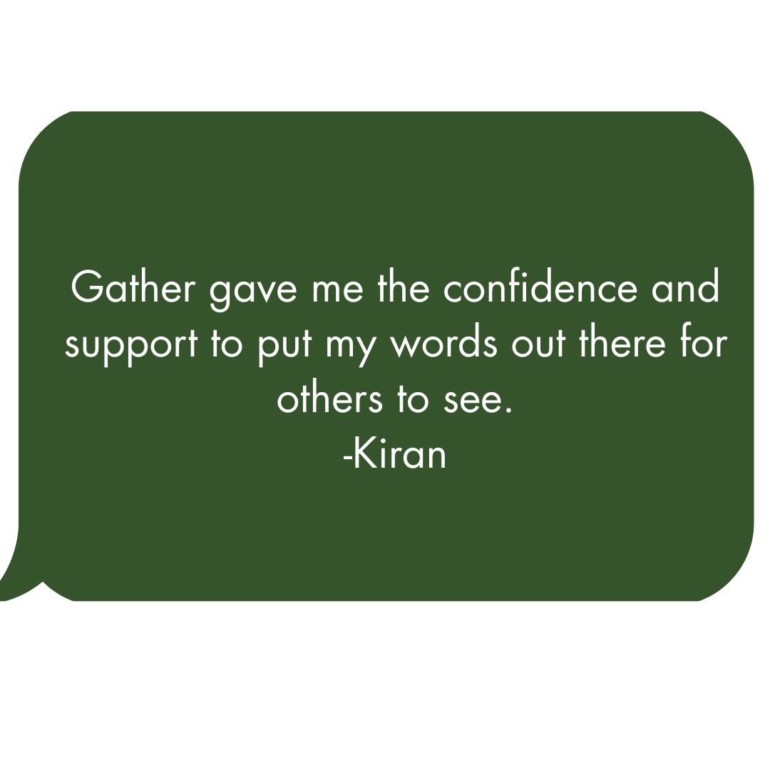 If you are a student of language, open-minded, and willing to support other writers alongside you, Gather is for you. This writing community will softly push you to write outside of your comfort zone.